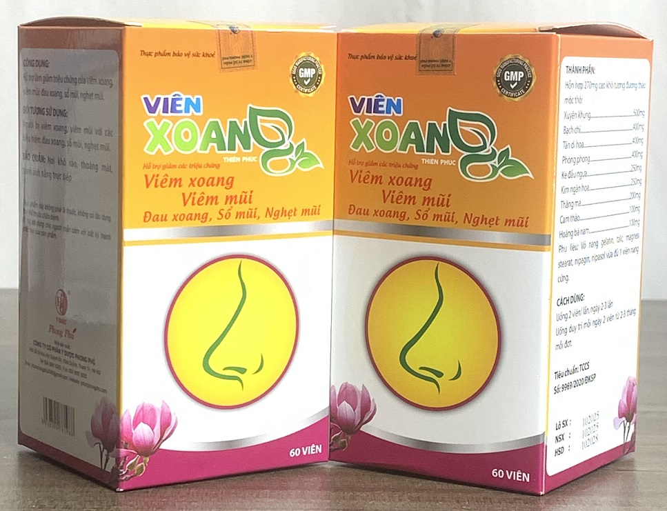 Thực phẩm bảo vệ sức khỏe Viên Xoan Thiên Phúc Hỗ trợ giảm triệu chứng của viêm xoang, viêm mũi: đau xoang, sổ mũi, nghẹt mũi.