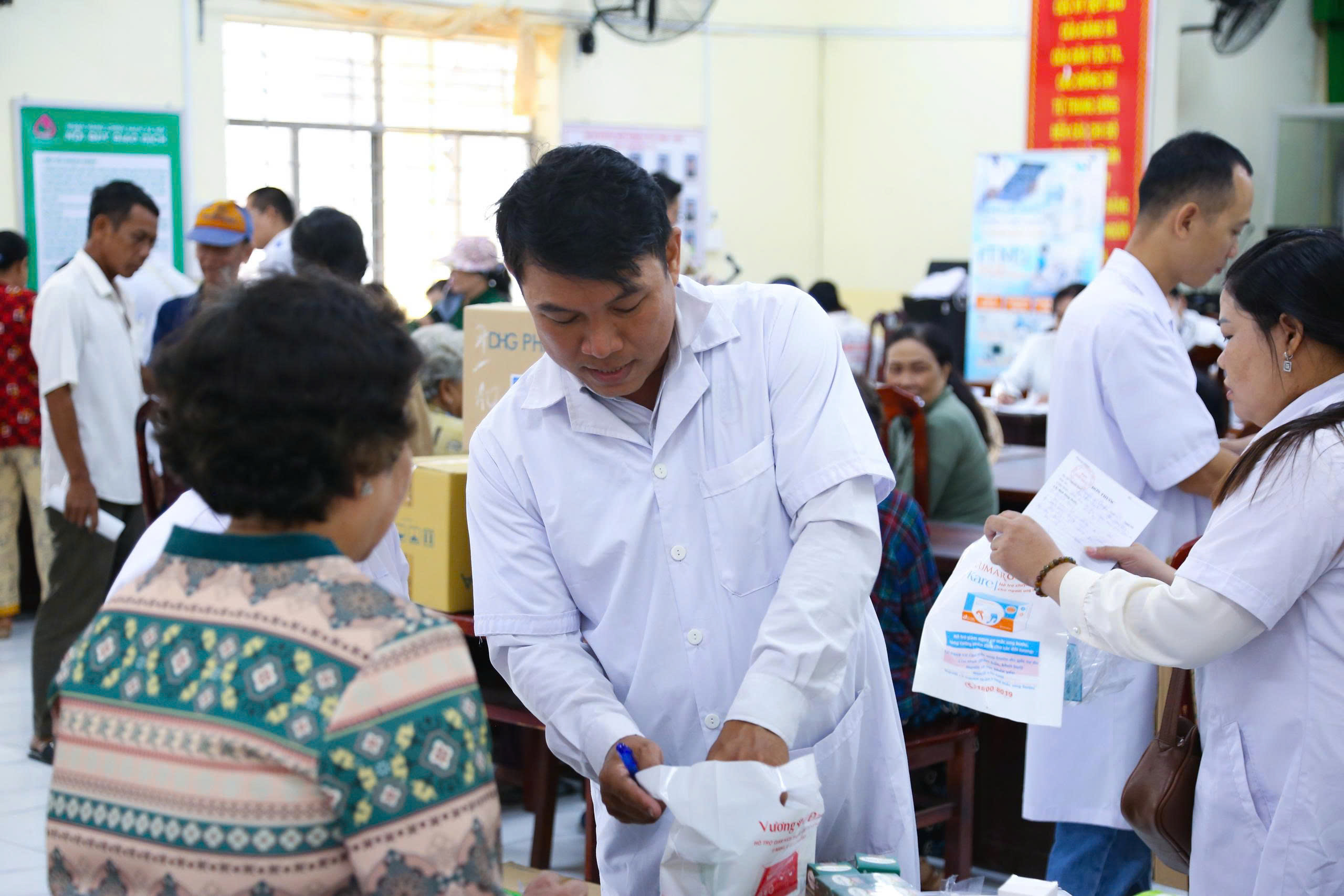 Tại buổi thiện nguyện, đoàn y bác sĩ và đội ngũ nhân sự công ty đã tiến hành thăm khám tổng quát, kiểm tra các chỉ số sức khỏe cơ bản như huyết áp, tim mạch, đường huyết… Đồng thời, bà con được tư vấn kỹ lưỡng về cách phòng ngừa các bệnh lý thường gặp, đặc biệt là các bệnh mãn tính ở người cao tuổi. Các loại thuốc được cấp phát miễn phí đều đảm bảo chất lượng, phù hợp với tình trạng sức khỏe của từng người sau khi được thăm khám cẩn thận.